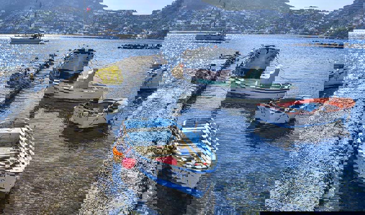 Manolis kör mig bort till fiskebyn Emborios vid Kalymnos norra ände, där några restauranger och pensionat finns samlade runt en turkos lagun. Tavernan Dreamcatcher ligger tre meter från stranden och här serveras en ljuvlig lunch med enbart lokala specialiteter, som mermizelisallad med kopanisti-ost, friterade zucchinibollar samt fylla, Kalymnos egen variant av vinbladsdolmar. Huvudrätten blir grillad rödstrimmig barbounifisk.