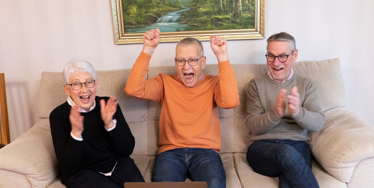 DET ÄR DAGS för en ny omgång i Kombispels Superjackpottdragning, och även den här gången sker den digitalt. I vardagsrummet hemma i Smålandsstenar sitter en glad och förväntansfull Jörgen Berg tillsammans med syster Ingbritt och svåger Tommy.